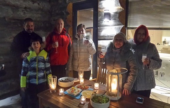 Evin büyük bir kısmı cam olmasına rağmen sıcaklık çok yüksek. Şömineyi yakınca kapıyı açmak zorunda kalıyoruz. Geceler uzun ama çok keyifli. Sanki karların içinde oturuyormuş gibi hissediyoruz. Uzun zamandır fırsat bulamadığımız sohbet etme imkanını buluyoruz. -18 derecede terasta parti yapıyoruz. Bazı yiyecekler donsa da, içeceklerimize buz ihtiyacı hissetmiyoruz. Otelde kalmayıp evde kalmanın ne kadar doğru bir tercih olduğunu anlıyoruz. Doğa ile başbaşa.
